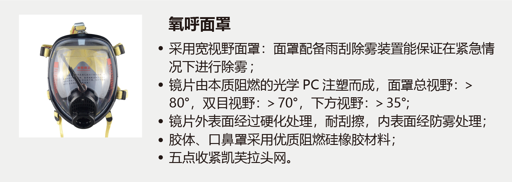 5.采用寬視野面罩:面罩配備雨刮除霧裝置能保證在緊急情況下進(jìn)行除霧,面罩總視野:>80°,雙目視野:>70°,下方視野:>35°;