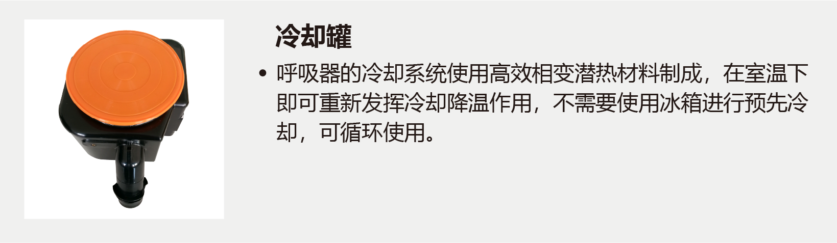6.呼吸器的冷卻系統(tǒng)使用高效相變潛熱材料制成,在室溫下即可重新發(fā)揮冷卻降溫作用,不需要使用冰箱進(jìn)行預(yù)先冷卻,可循環(huán)使用;
